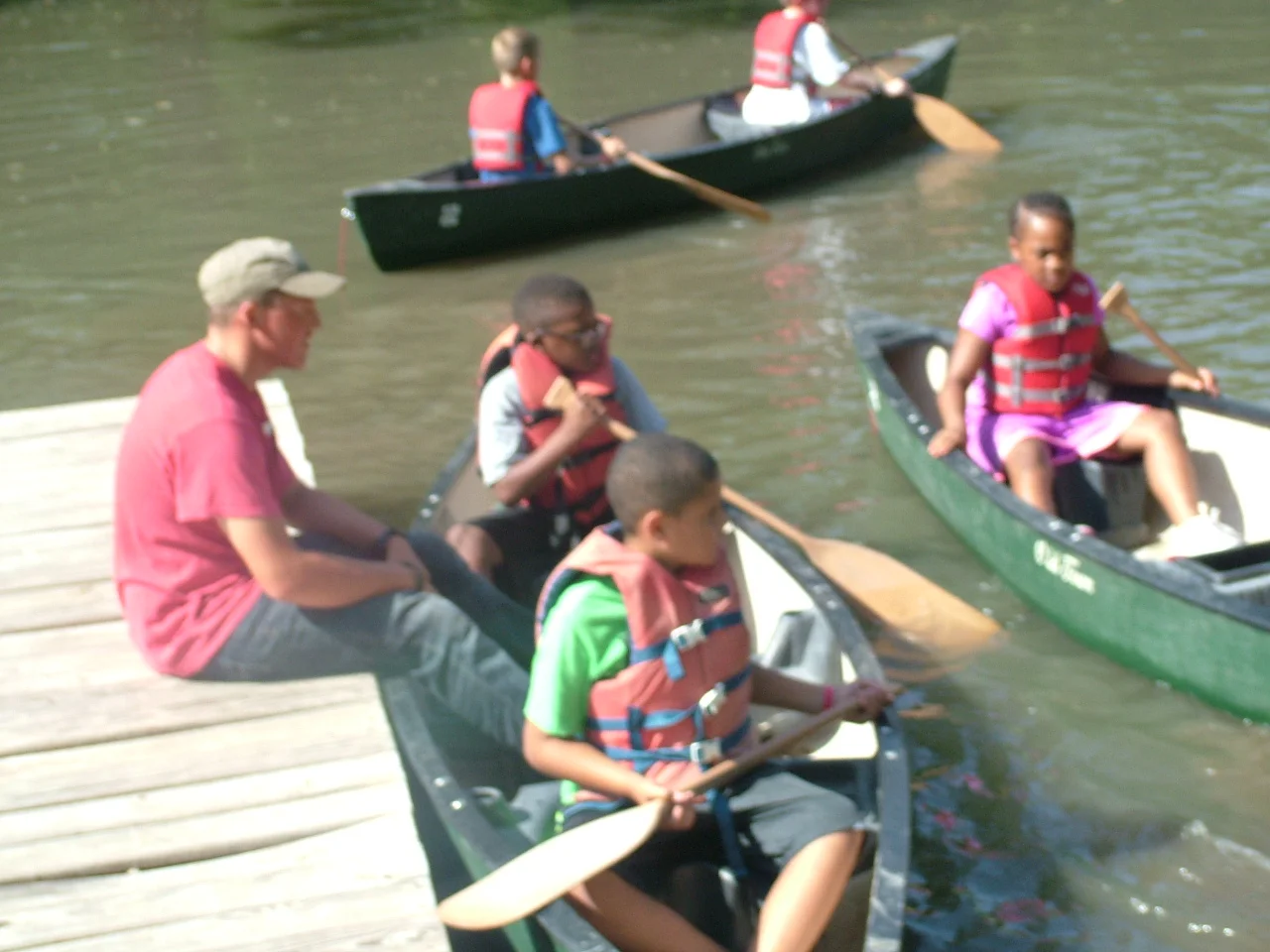Camp groups are organized by age group and each group consists of both male and female campers. Each group has at least one male counselor and one female counselor. Campers travel to their activities in their small groups with their counselors. Activities include archery, canoeing, fishing, animals and habitats, arts and crafts, leadership and community building activities, and swimming. Swimming is the only activity that does not occur in the small groups, but it is spent as another community time with the whole camp at once. Crafts, chalk, and music are offered as alternatives to the pool during swim time.